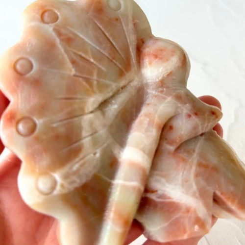 ピンクのお花がたっぷりの桜瑪瑙ユニコーンカービング